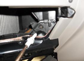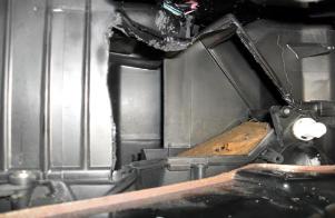 At this stage in the job, things are going pretty good. The plastic has been cut, the old broken blend doors